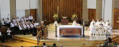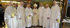 Pour souligner cet anniversaire, il y aura l’enregistrement de la messe, par l’équipe de Radio Canada, le dimanche 16 septembre 2012 qui sera télédiffusée le dimanche 25 novembre 2012 à l’émission Jour du Seigneur pour la fête du Christ-Roi. Lors de la Bénédiction de l’église en 1962, la famille d’Aurèle Arsenault de la paroisse avait fait un don d’un calice et d’une patène pour l’occasion. Ces vases sacrés, fabriqués il y a 50 ans par Desmarais et Robitaille, furent récemment redorés par la même compagnie et sont toujours conservés précieusement dans l’église Christ-Roi. Ils vous seront présentés dans les prochains dimanches afin que vous puissiez les apprécier en les voyant de plus près. Le coût pour les redorer s’élevait au montant de 1,291.59 $. Ceux et celles qui le désirent, peuvent faire un don à cet effet, en vous servant d’une enveloppe spécifiée «Don pour Calice et Patène redorés», placée à votre disposition aux entrées de l’église et en y ajoutant votre nom, adresse complète et numéro d’enveloppe de contribution. Veuillez noter à votre agenda les dates suivantes : le 29 juillet 2012 pour souligner la Première messe célébrée dans l’église Christ-Roi et le 16 septembre 2012 pour souligner le 50e anniversaire de la Bénédiction de l’église et des cloches extérieures. Paroisse du Christ-Roi, Moncton Source: Souvenir 50e anniversaire Archidiocèse de Moncton Établie avant 1930; première église en 1947; premier curé, 1950 Mgr. Henri D. Cormier, curé de la paroisse l’Assomption acheta un vaste terrain à l’ouest de la ville; les gens se demandaient quel motif pouvait bien l’inspirer, car à toute fin pratique, au nord de la rue John, la ville finissait à la rue High. Plus loin vers l’ouest, il y avait Georgetown, mais entre les deux, il n’y avait que des broussailles. Mgr. Cormier avait vu juste car aujourd’hui, la rue High est au centre de la ville. Le vaste terrain qu'il a acheté, a été divisé en cinq secteurs par les rues Dominion, Norwood et Essex. Le premier de ces terrains fut utilisé, en 1932, pour construire l’école Essex qui était dirigée par les Religieuses Notre-Dame-du-Sacré-Cœur. Après la guerre, on construisit plusieurs centaines de maisons dans ce quartier pour les soldats de retour, et toute la région prit un nouvel essor. La paroisse Cathédrale ne pouvait suffire aux besoins religieux de cette population française de la ville. Il fut donc décidé de construire une chapelle sur un de ces terrains. On acheta deux vastes édifices du Camp 31 de l’aviation avec lesquels on aménagea une première église qui fut placée sous le vocable Christ-Roi; c’était en 1947. En même temps, sur une autre partie du terrain, on construisit le Collège l’Assomption. Cet externat classique devait servir à l’éducation française et catholique des jeunes francophones de la région. Il fut confié aux Frères de l’Instruction Chrétienne avant de passer au clergé séculier du diocèse. On y donnait le cours classique jusqu’à la rhétorique. Avec l’ouverture de l’école secondaire Vanier et le transfert du Collège Saint-Joseph à Moncton, le Collège l’Assomption se vit obligé de fermer ses portes en 1966. La chapelle du Christ-Roi relevait de la paroisse Cathédrale et aux débuts, c’est le Père Antoine Richard qui desservait la communauté. La paroisse fut érigée en mai 1950, et le Père Jean-Paul Albert devenait le premier curé; il logeait dans une maison de la rue York. Le Père Albert ne resta que peu de temps au Christ-Roi. Il était déjà atteint du mal qui devait l’emporter. Durant sa longue maladie et après sa mort, c’est Mgr. François Daigle, alors professeur au Collège l’Assomption, qui fut administrateur de la paroisse. En 1951, la paroisse recevait son deuxième curé, le Père Philippe Robichaud. Le 30 décembre 1959, un incendie vient détruire complètement l’église du Christ-Roi. Deux jours plus tard, les paroissiens se réunissaient au sous-sol de l’église Saint-Augustin, et avec leur curé, commençaient les projets pour la construction d’une nouvelle église ainsi que d’un presbytère. Les plans pour ces constructions ont été préparés par la firme LeBlanc, Gaudet et Associés, et les travaux de construction ont été exécutés par Modern Construction Ltée. La bénédiction du terrain et la première levée de terre eurent lieu le 29 mai 1961, par Mgr. Norbert Robichaud, et le Père Philippe Robichaud, La nouvelle église était ouverte au culte le 29 juillet ’62. La bénédiction solenelle de l’église, du presbytère et des trois cloches avait lieu le 16 septembre 1962 et était présidée par Mgr. Norbert Robichaud, archevêque de Moncton. Le Père Robichaud resta curé jusqu’en 1971. Il fut remplacé par Paul Breau (1971-1981) et Yvon Barrieau depuis lors, le curé actuel. |